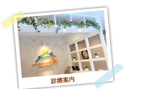 | 診察時間 | 9:00~12:00 16:00~19:30 (日祝は9:00~12:00のみ) |